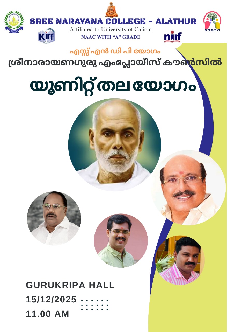 എസ്സ് എൻ ഡി പി യോഗംശ്രീനാരായണഗുരു എംപ്ലോയീസ് കൗൺസിൽ ശ്രീനാരായണ കോളേജ് ആലത്തൂർശ്രീനാരായണഗുരു എംപ്ലോയീസ് കൗണ്സിലിന്റെ യൂണിറ്റ്തല യോഗം 15.12.2025 നു ഗുരുകൃപ ഹാളിൽ വച്ച് നടന്നു....