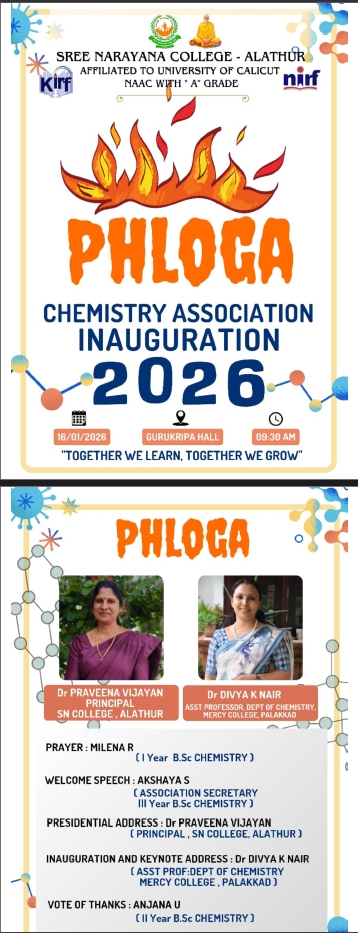Chemistry Association Inauguration at Sree Narayana College, Alathur The Chemistry Association of Sree Narayana College, Alathur, titled PHLOGA, will be...
