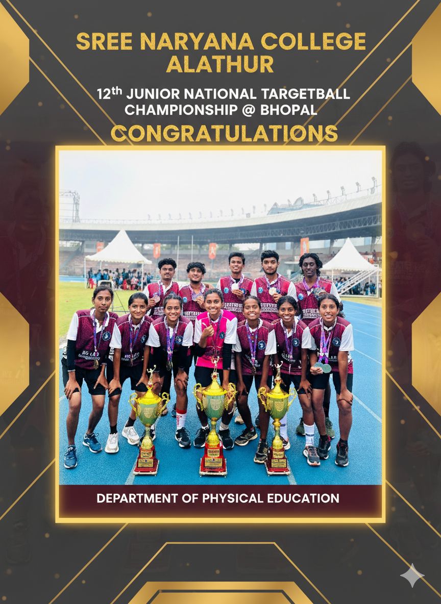 ഭോപ്പാലിൽ വച്ചു നടന്ന ജൂനിയർ നാഷണൽ ടാർഗറ്റ് ബോൾ ൽ. സമ്മാനർഹരായ ശ്രീനാരായണ കോളേജ് ആലത്തൂർ ന്റെ അഭിമാന തരങ്ങൾ