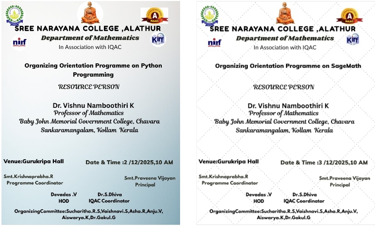 Orientation Programmes on Python Programming and SageMathOrganized by the Department of Mathematics, SNC Alathur