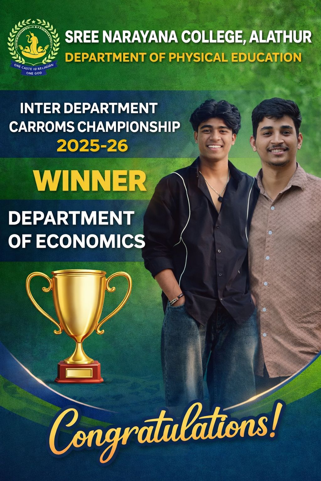 Read MoreThe Department of Economics of Sree Narayana College, Alathur emerged as the Champions of the Inter-Department Carroms Championship 2025–26, organised...