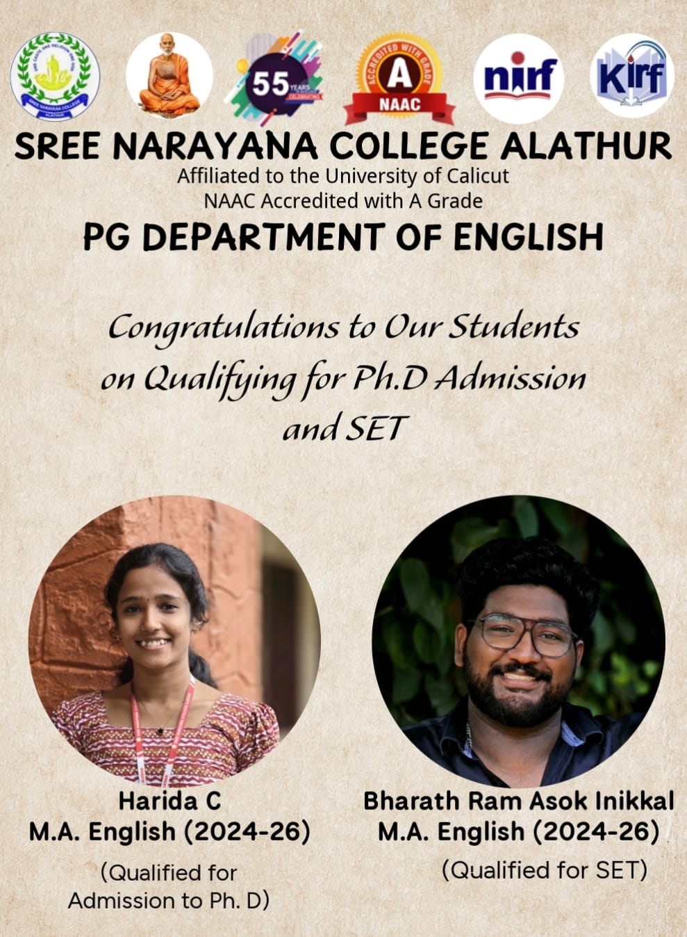 Read MorePG English Students of Sree Narayana College Alathur Excel in Ph.D and SET Qualifications Alathur: The PG Department of English,...