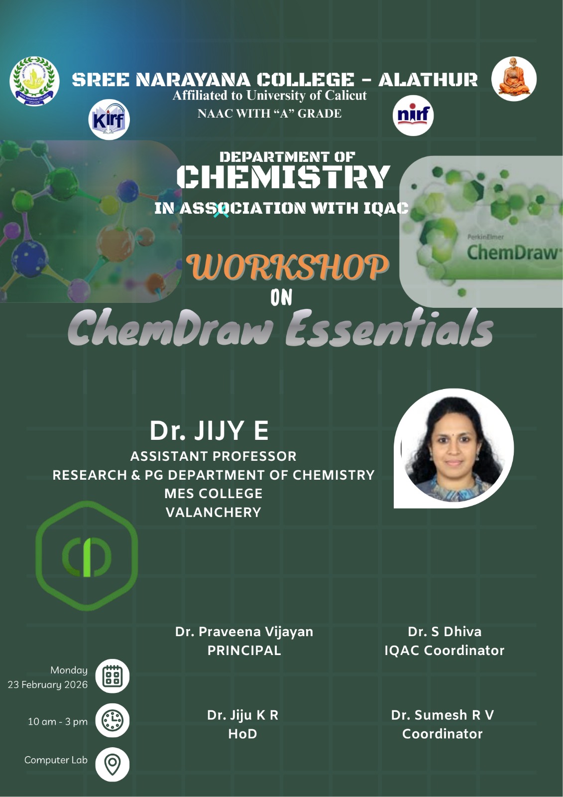 Workshop on ChemDraw Essentials Conducted at Sree Narayana College, Alathur The Department of Chemistry, in association with IQAC, Sree Narayana...
