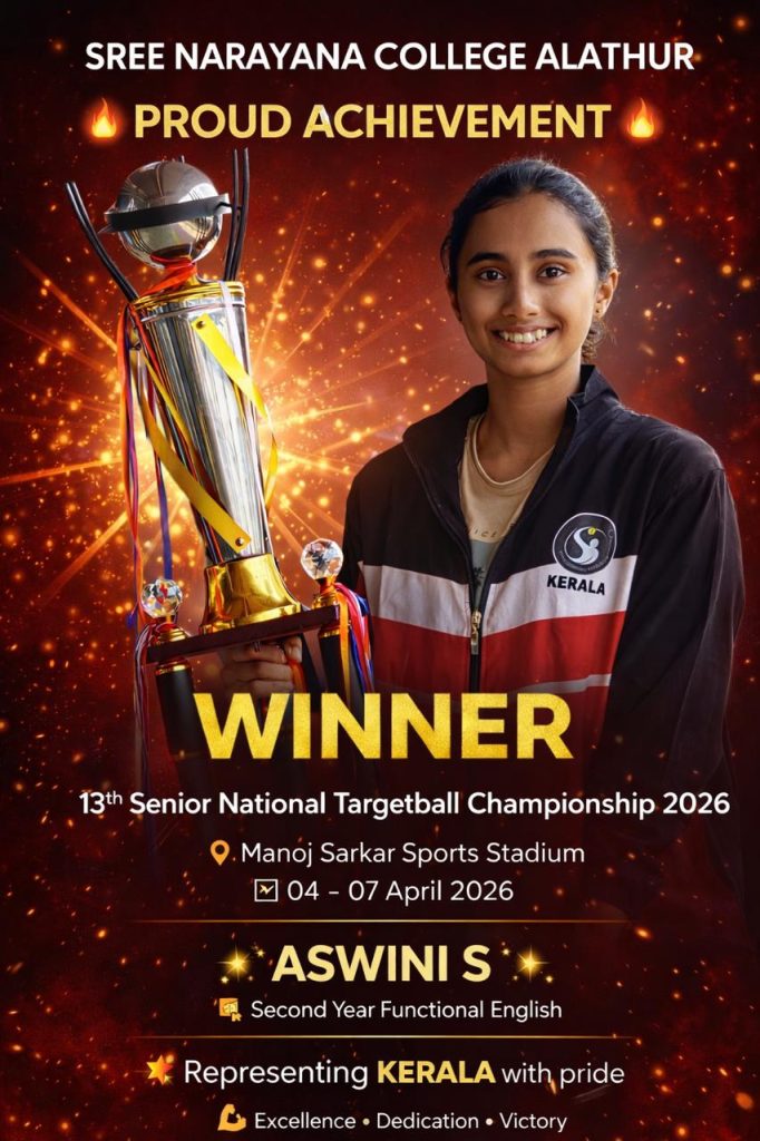 Alathur: Sree Narayana College celebrates a proud moment as student Aswini S secured victory at the 13th Senior National Targetball Championship 2026. Representing Kerala, she emerged as the winner in the prestigious national-level tournament held at Manoj Sarkar Sports Stadium from April 4 to 7, 2026.
