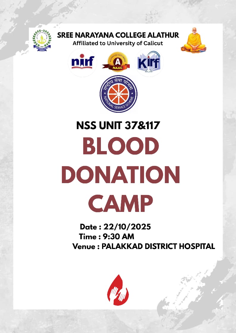 Read MoreSREE NARAYANA COLLEGE ALATHUR ORGANIZES BLOOD DONATION CAMP Alathur, October 22, 2025:The NSS Units 37 and 117 of Sree Narayana...