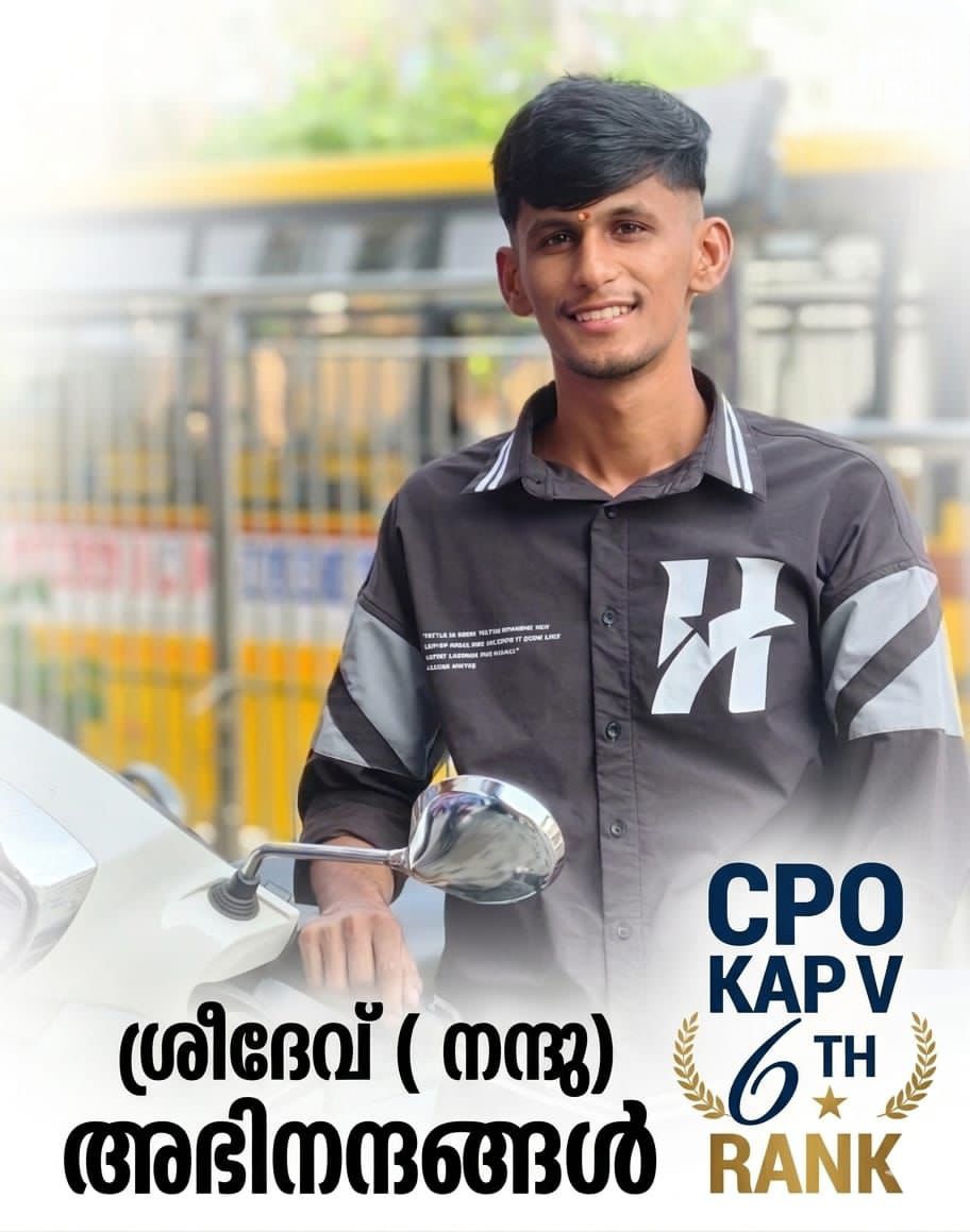 Alathur: In a remarkable achievement, Shridev P B, a former NCC cadet, has secured the 6th rank in the Civil Police Officer (CPO) rank list published by the Kerala Public Service Commission.
