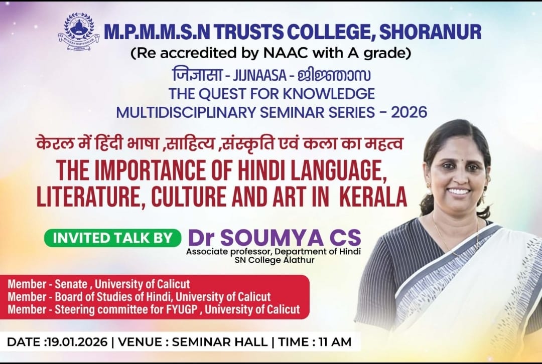 As part of the Multidisciplinary Seminar Series – 2026, titled “Jijnaasa – The Quest for Knowledge,” an invited talk on “The Importance of Hindi Language, Literature, Culture and Art in Kerala” was successfully conducted at M.P.M.M.S.N Trusts College, Shoranur, recently.