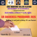 The PG Department of English at Sree Narayana College, Alathur arranged an orientation event for the first-year BA Functional English students, held at Gurukripa Hall on July 12 at 1:30 PM. The event aimed to familiarize the new cohort with the latest CUFYUGP syllabus, empowering them to make well-informed decisions regarding their undergraduate academic journey. The session commenced with an inspiring address by the Principal, Dr. N.S. Rajendran, who encouraged the students with his insightful remarks. Subsequently, Ms. Remya Rajan, the Head of the Department, delivered a brief but impactful speech. The highlight of the event was a detailed presentation by Ms. Poornima, Assistant Professor in the Department of English, who meticulously explained the CUFYUGP syllabus and its structure. The orientation was graced by the presence of all faculty members from the Department, along with the new students.